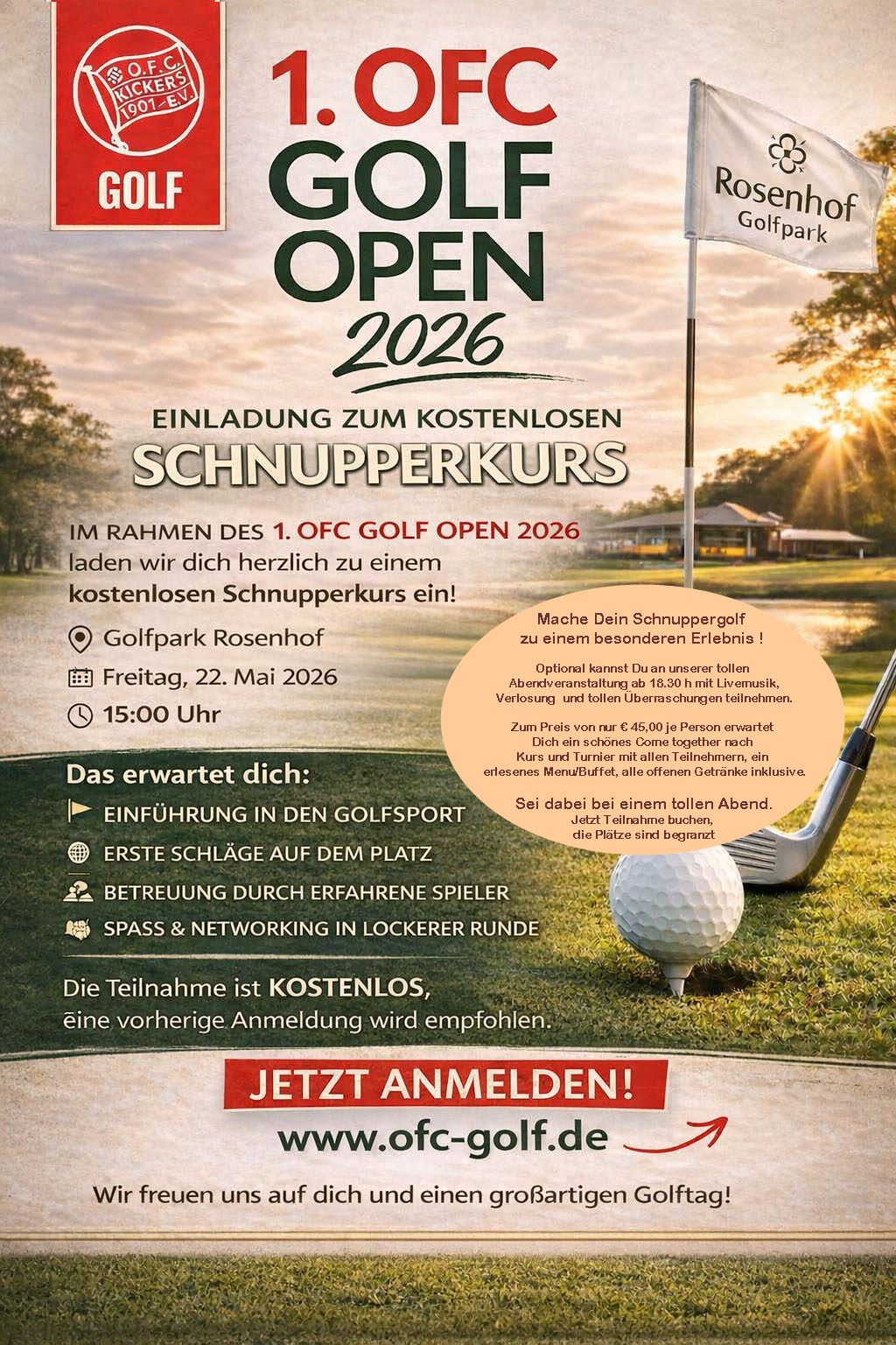 Ebenfalls im Rahmen der 1. OFC Golf Open laden wir alle Golf-interessierten OFC Freunde herzlich zu einem
